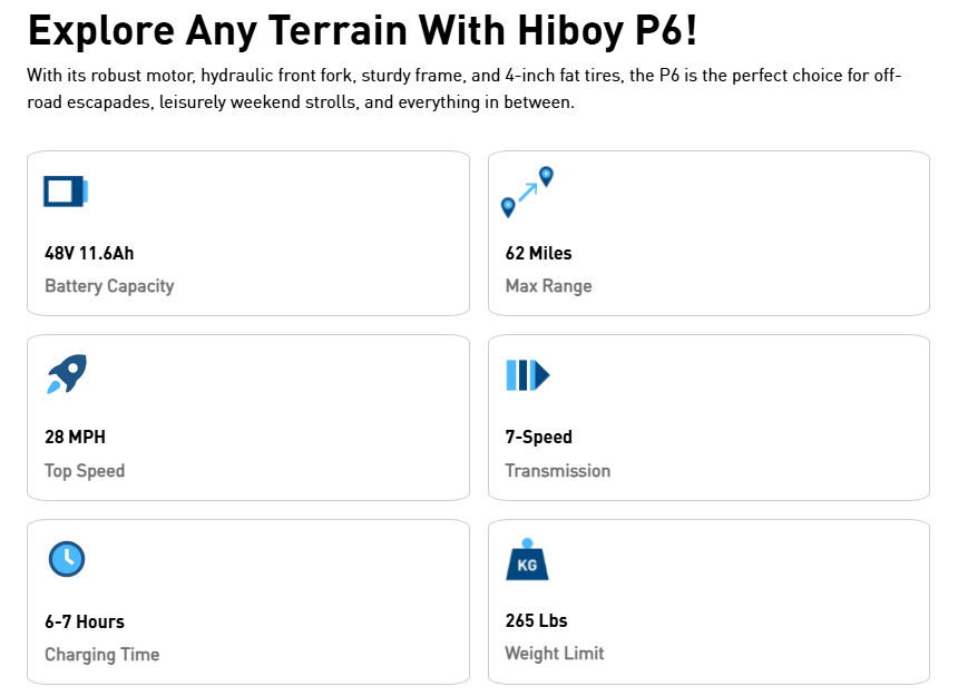 Hiboy P6 Fat Tire Electric Bike 2024