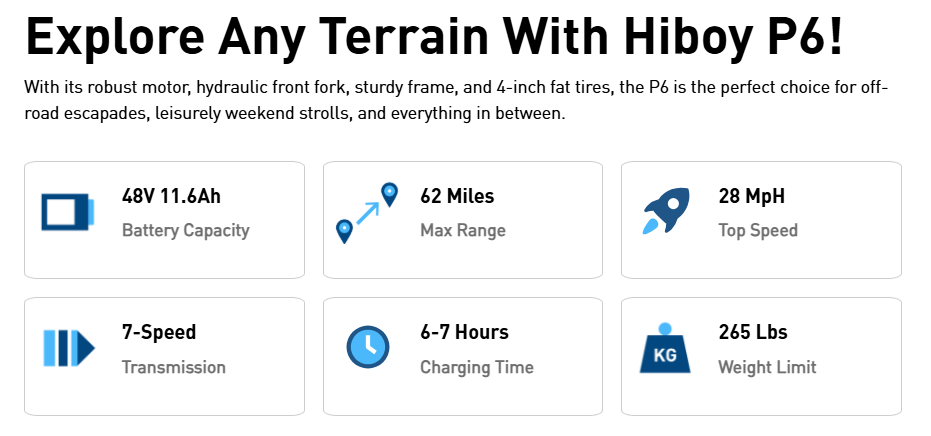 Hiboy P6 Refurbished Fat Tire Electric Bike