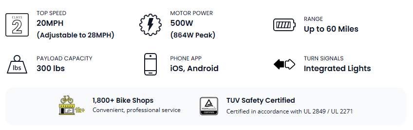 Reinvigorate the casual bike ride with Pace 500.3! Feel your efforts amplified with its intuitive torque sensor, then set the pace. How you cruise is up to you. The Pace 500.3's 500W motor, with a top speed of 28 mph and up to 60 miles in range, gives a whole new meaning to going for a spin. The all-new turn signal functionality allows you to command traffic with confidence as you enjoy your roll through the neighborhood. Its cushioned saddle, swept-back handlebars, and upright riding position provide the ultimate comfort along the way. Pace 500.3 is leisure with a lift as you switch between its 4 new pedal assist levels: eco, tour, sport and turbo. Take the alternate route, there's much more to see.