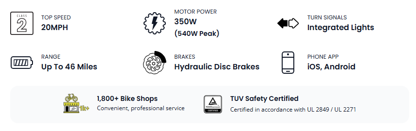Revolutionize your ride with the Soltera 2.5. Designed for performance and versatility, the exceptional handling and upgraded componentry puts you in command of every ride. Now with hydraulic brakes and faster rolling tires, the Soltera 2.5 is sure to elevate every ride. The lightweight frame design and advanced torque sensor technology pair perfectly to ensure you can seamlessly conquer your commutes or take a cruise through the city with maximized efficiency. Integrated turn signals ensure you stay visible and safe, giving motorists and pedestrians clear communication, day or night. Hop on the Soltera 2.5 and put your pedals to the pavement, more road awaits.